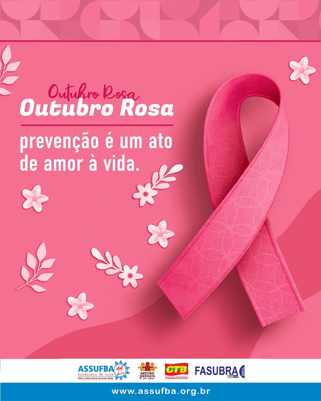 A ASSUFBA se une mais uma vez à Campanha Outubro Rosa, reforçando a importância da prevenção e do diagnóstico precoce do câncer de mama. Este é um momento de conscientização, cuidado e solidariedade, em que reafirmamos o nosso compromisso com a saúde e o bem-estar da categoria. Cuidar de si é um ato de amor e de resistência.