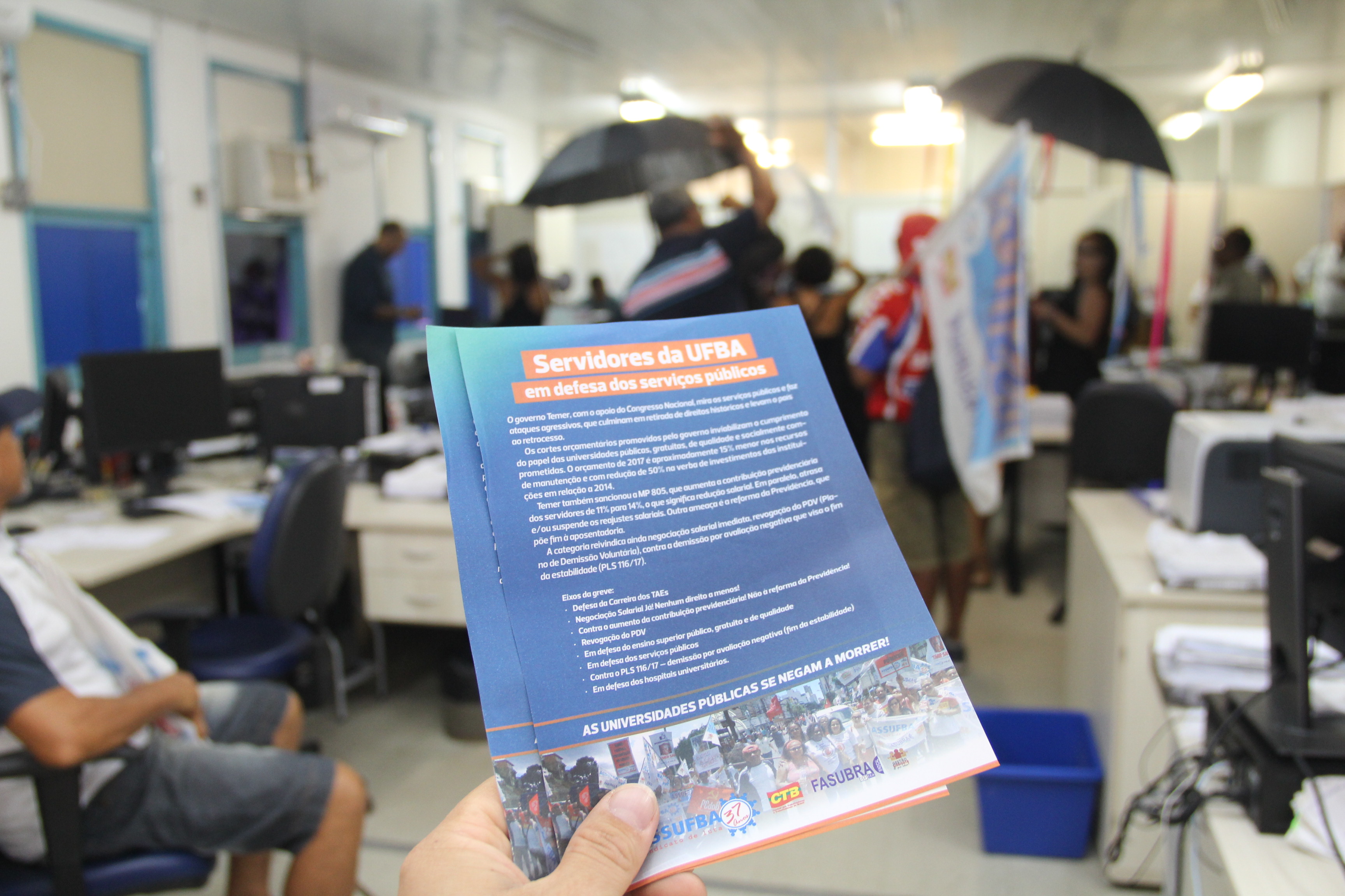A FASUBRA orientou as entidades sindicais pela deflagração da greve por tempo indeterminado. Mas, na UFBA, os trabalhadores decidiram, em assembleia, pela realização de paralisações e uma nova assembleia acontece nesta quinta-feira (16/11), para avaliar o nível de mobilização.
