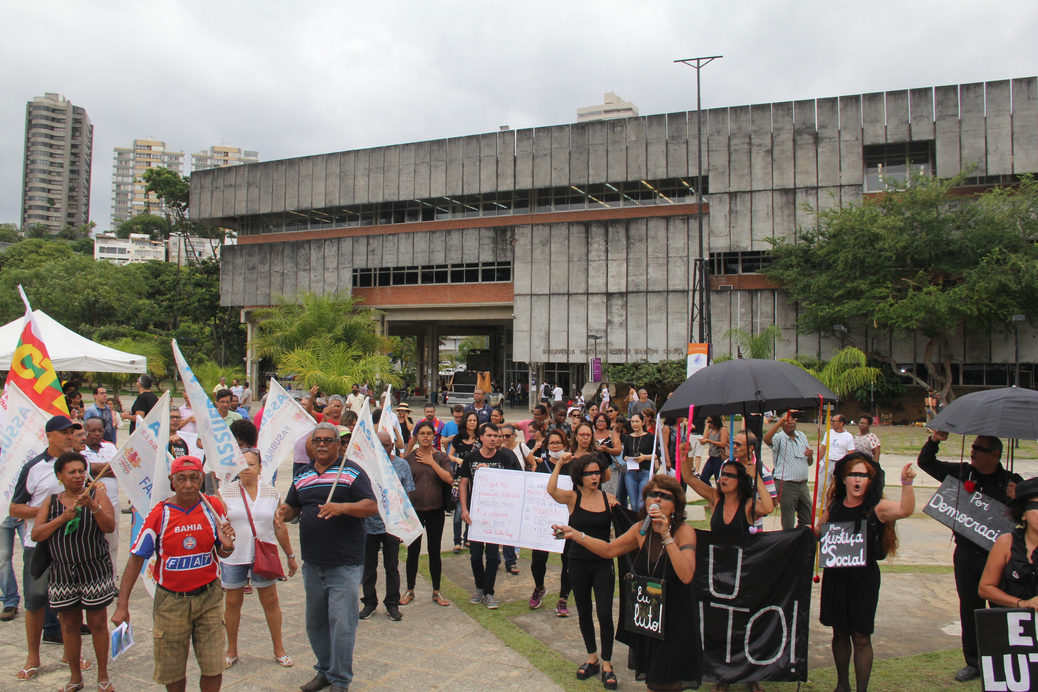 A mobilização contou com a apresentação do Comitê Poético contra o Golpe, com a intervenção Eu Luto. Junto com o grupo, a Coordenação da ASSUFBA e os servidores seguiram em direção à praça das Artes, onde fizeram ato. Diversos estudantes se juntaram à manifestação. É o caso de Lise Silvany, aluna do curso de Letras, que chamou a atenção para o quanto a Universidade avançou e se democratizou, a exemplo do sistema de cotas.