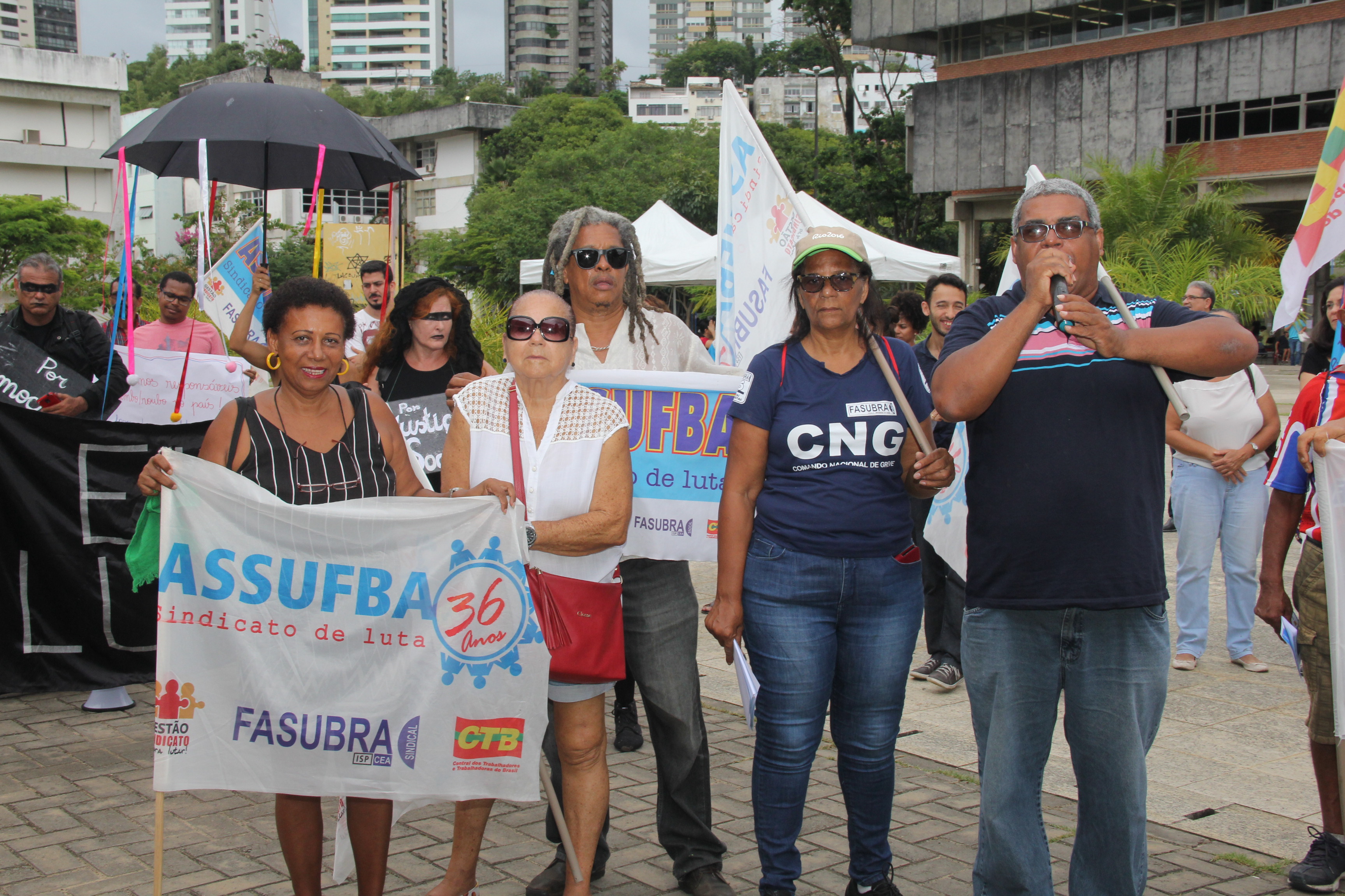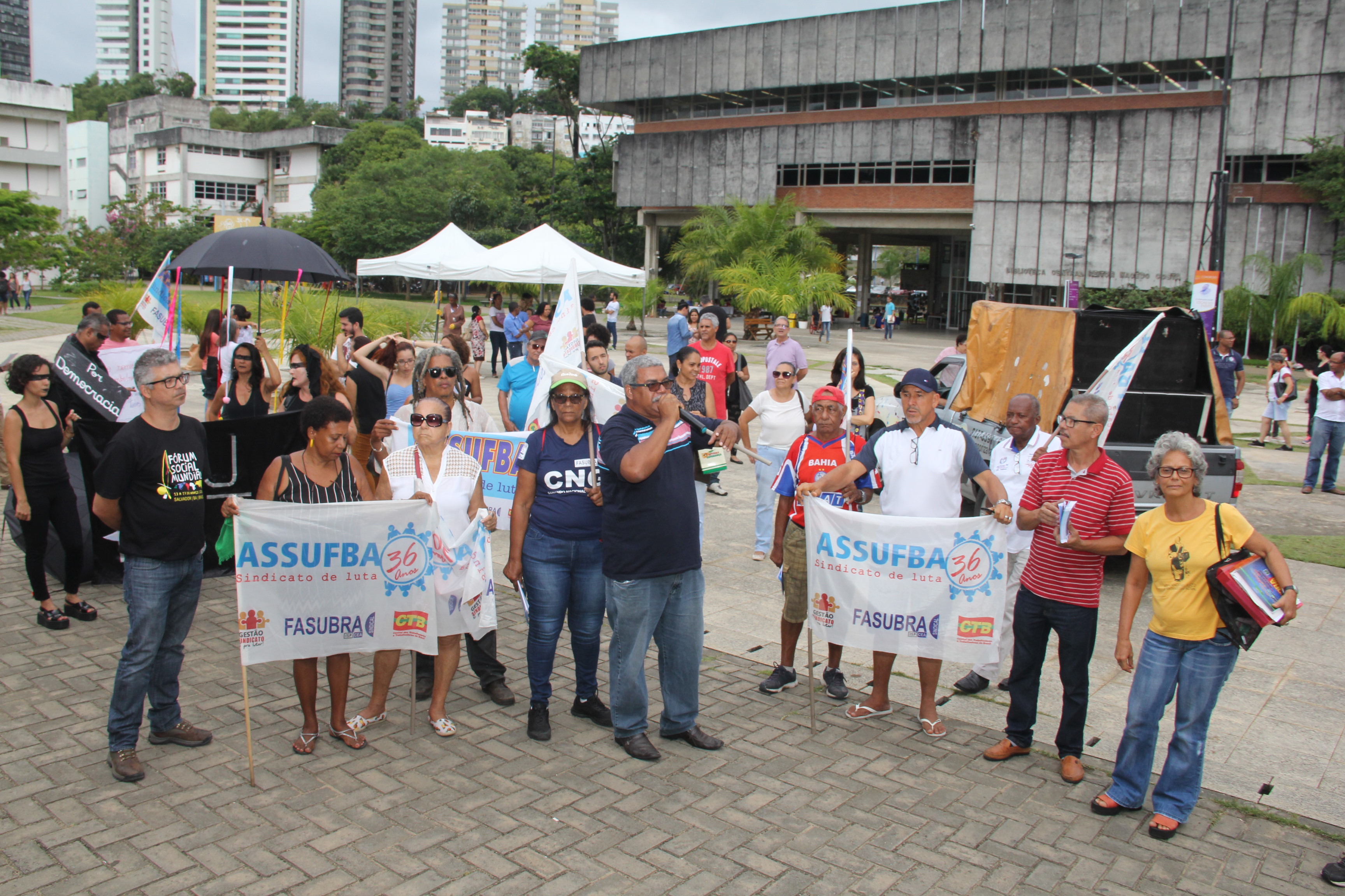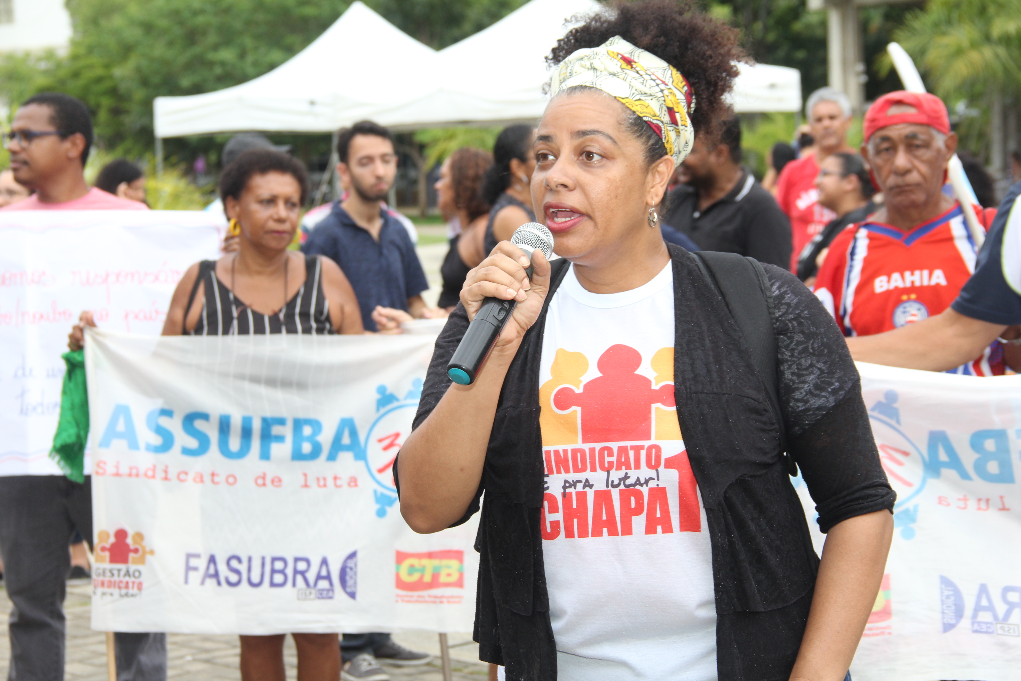 O ato teve a participação da deputada federal e servidora licenciada da UFBA, Alice Portugal, que criticou o projeto neoliberal do governo Temer, que aumentou a contribuição previdenciária dos servidores públicos de 11% para 14%, sem contar nas medidas que atingem em cheio o funcionalismo. A parlamentar frisou que é preciso ampliar a unidade. “É necessário unir para lutar”.