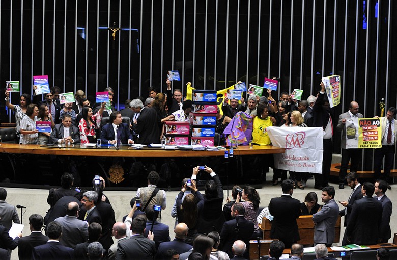Ao longo do dia a Casa esteve lotada manifestantes – estudantes, funcionários públicos de diversos setores, movimentos sociais e entidades sindicais que protestavam contra a aprovação da proposta e pediam o voto contrário dos parlamentares.