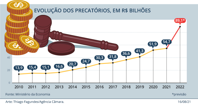 Nesta terça-feira (14/09), o relator da matéria, deputado Darci de Matos (PSD-SC), apresentou um novo parecer pela admissibilidade e voltou a defender a constitucionalidade da PEC, que altera o pagamento de precatórios, que são dívidas do governo com sentença judicial definitiva. Até 2029, aqueles com valor acima de 60 mil salários mínimos, ou R$ 66 milhões, poderão ser quitados com entrada de 15% e nove parcelas anuais.