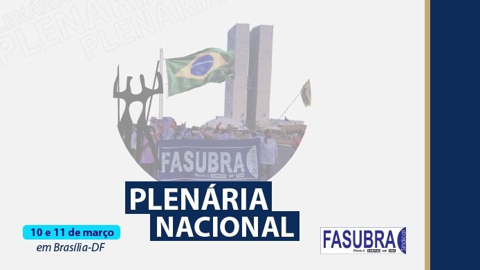 A FASUBRA Sindical realiza a Plenária Nacional nos dias 10 e 11 de março, das 8h30 às 17h30, no Auditório da Faculdade de Saúde da Universidade de Brasília – UnB, em Brasília-DF.