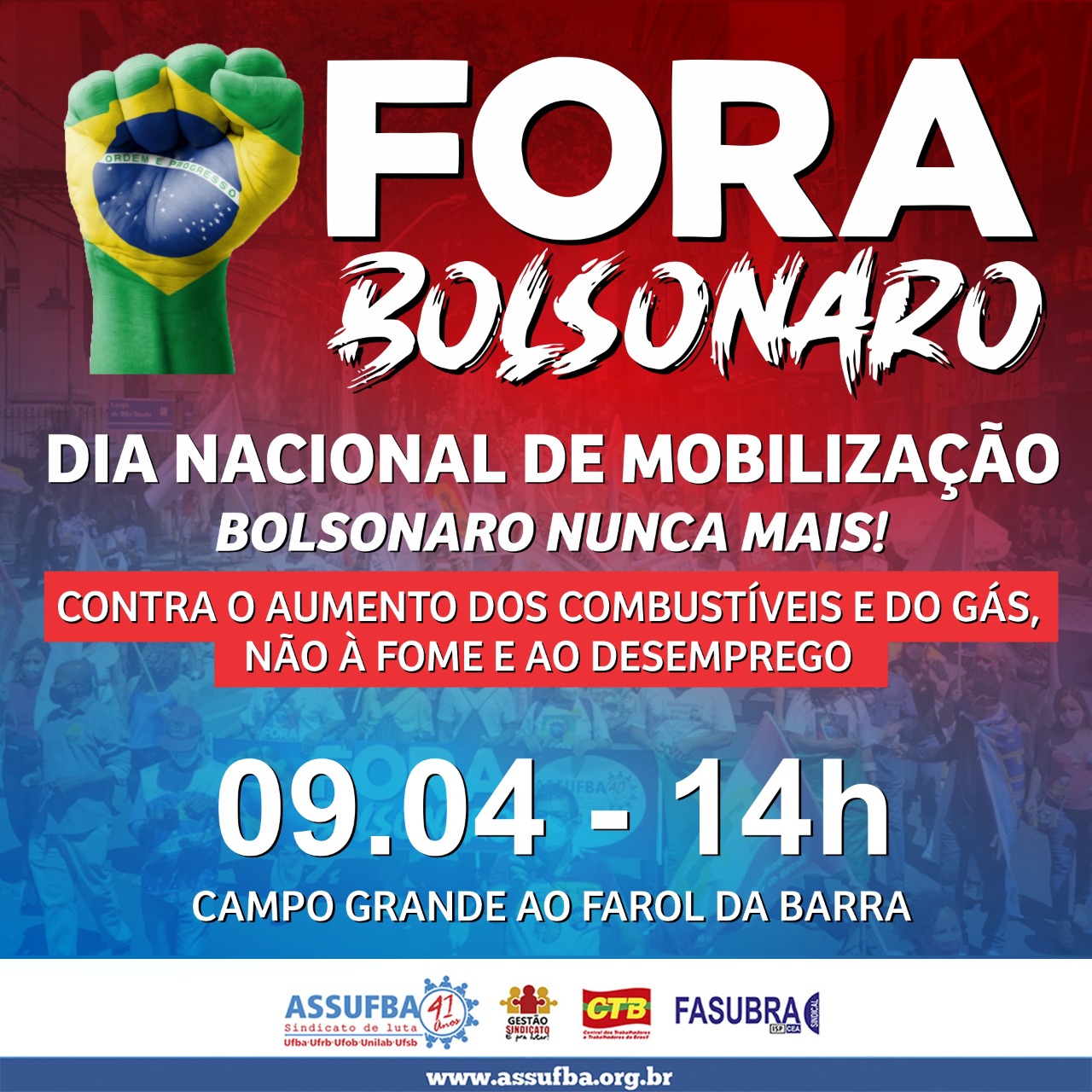 Os aumentos escandalosos na inflação, nos preços dos combustíveis, no desemprego, na fome e na carestia empurram mais ainda a população brasileira ao abismo. O povo não aguenta mais. Por isso, no dia 9 de abril, as centrais sindicais, sindicatos, movimentos sociais e populares, trabalhadores, estudantes e desempregados voltam às ruas em mais uma manifestação pelo Fora Bolsonaro. Em Salvador, o ato acontece às 14h, do Campo Grande ao Farol da Barra.