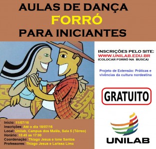 O projeto de extensão “Práticas e vivências da cultura nordestina” abre inscrições para aulas de forró para iniciantes. As aulas acontecerão às segundas-feiras, das 15h45 às 17h, na sala 05 (térreo), do Campus dos Malês.