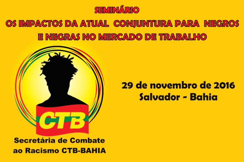 “Os impactos da atual conjuntura para negros e negras no mercado de trabalho”. Este é o tema do seminário que a Secretaria de Combate ao Racismo da CTB Bahia promove no próximo dia 29 de novembro, em Salvador. O evento acontece no Espaço Cultural do Sindicato dos Comerciário, em Nazaré, das 9h às 12h, e marcará também o lançamento da segunda edição da revista Rebele-se, editada pela CTB Nacional.