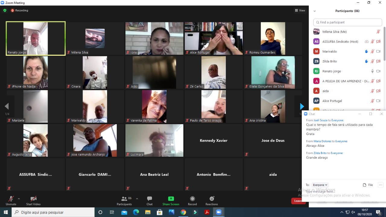 A quinta-feira (08/10) foi um dia de importantes decisões para os Técnico-Administrativos em Educação da UFBA e da UNILAB. Em uma grande Assembleia Geral Virtual realizada pela ASSUFBA, os servidores aprovaram as propostas apresentadas pelo Sindicato para enfrentar o desmonte do serviço público promovido pelo governo Bolsonaro e a posição contrária ao indicativo de Greve Nacional da FASUBRA.