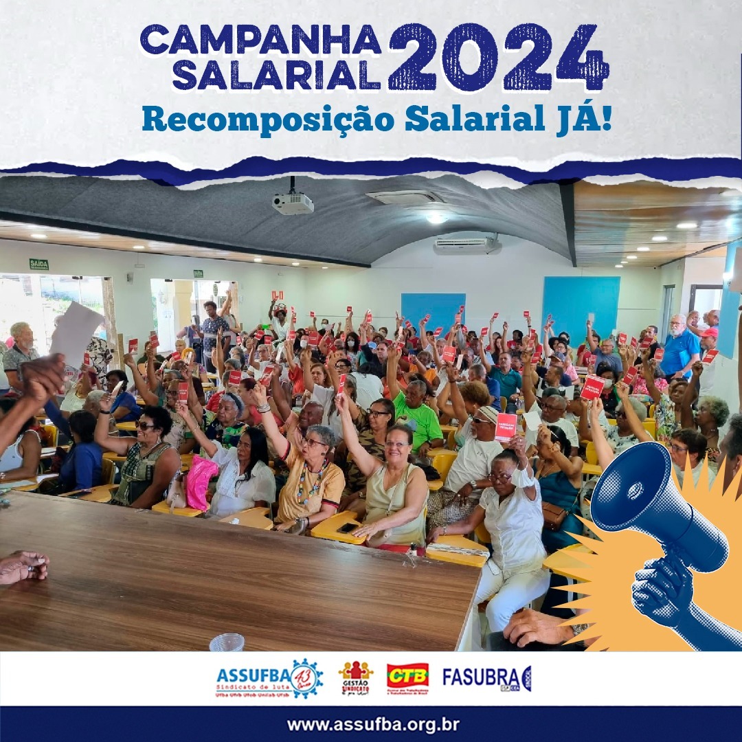 Nesse período de começo de ano, o coordenador Geral, Renato Jorge, informou que a ASSUFBA Sindicato já realizou duas mobilizações pela Campanha Salarial 2024. A primeira ação foi realizada na Lavagem do Bonfim, onde a categoria levou as bandeiras de luta às ruas pela valorização do serviço público. A segunda atividade, foi o Dia Nacional de Luta dos(as) Aposentados(as), uma grandiosa ação que reuniu centenas de aposentados no auditório do Sindicato num encontro histórico.