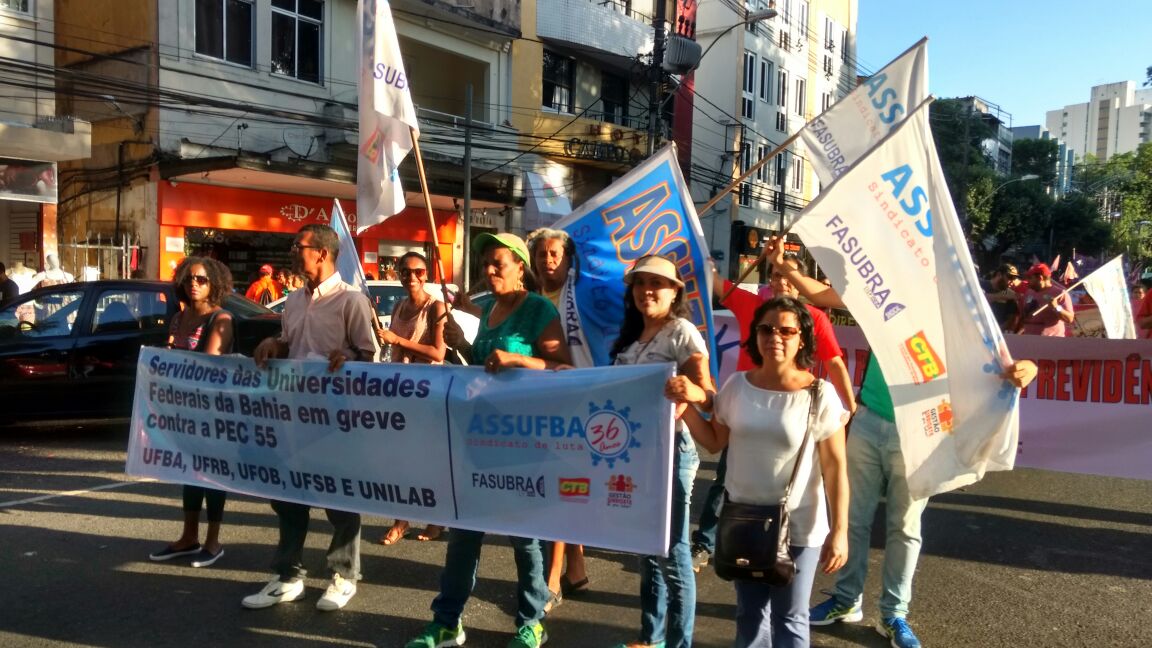 Servidores da UFBA vão às ruas em passeata contra a PEC 55