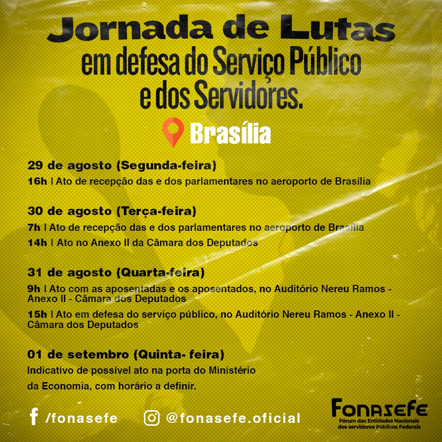 Nesta semana, as entidades que compõe o Fonasefe realizam, em Brasília, Jornada de Lutas em defesa dos Serviços, das servidoras e servidores.