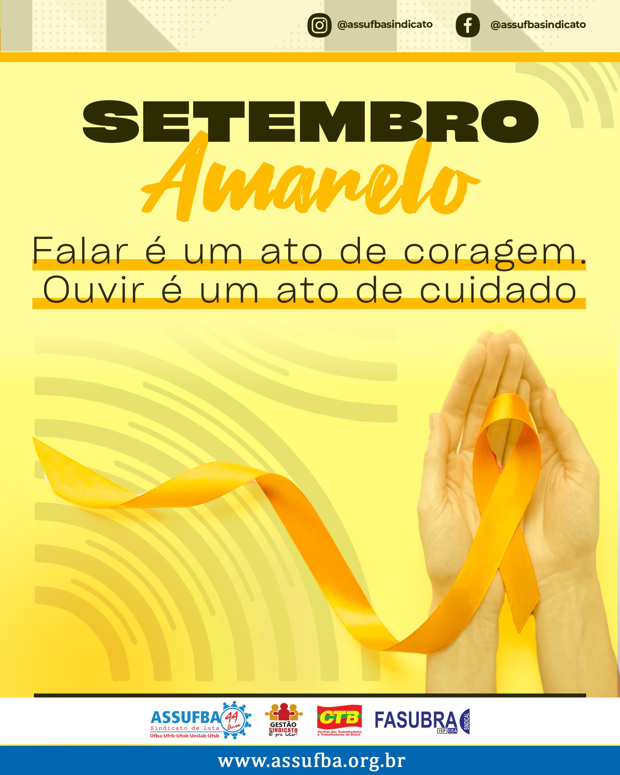 Um gesto de apoio pode fazer toda a diferença e salvar vidas. A ASSUFBA Sindicato abraça a campanha e reafirma a luta pela vida. Se precisar, busque ajuda. Ligue 188 (Centro de Valorização da Vida – CVV).