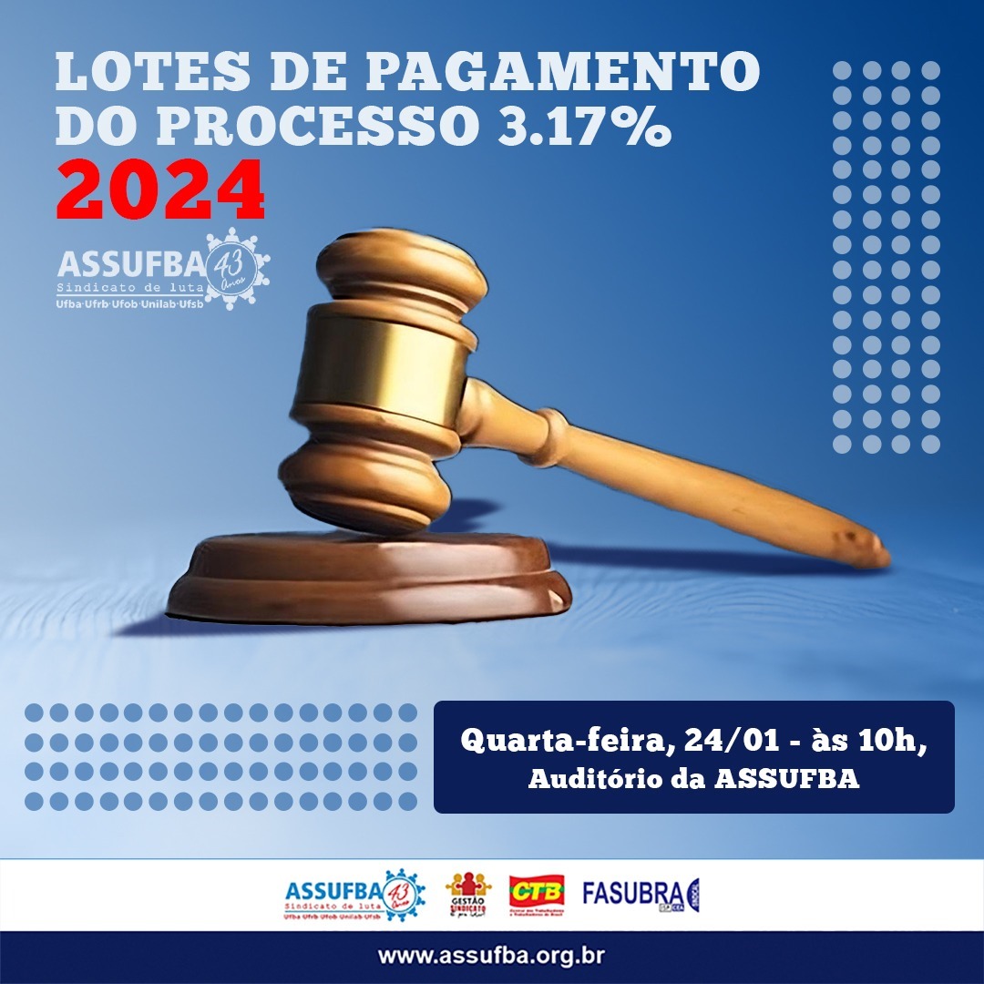 ASSUFBA inicia o ano de 2024 executando processo 3,17%. Veja se o seu nome está na lista