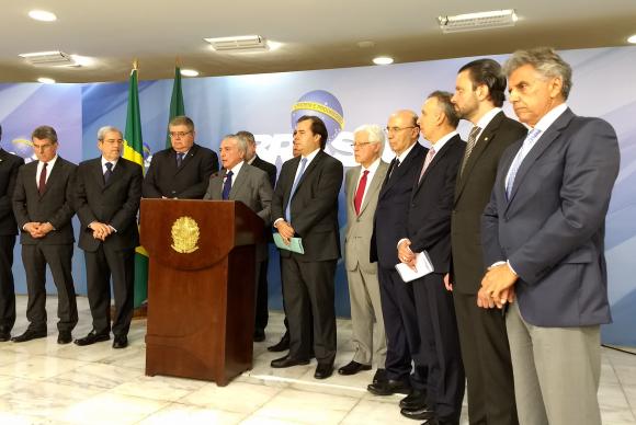 Além de Marun, estavam presentes no pronunciamento o presidente da Câmara, Rodrigo Maia (PMDB-RJ), o relator do projeto de reforma da Previdência, Arthur Maia (PPS-BA) e o líder do governo no Senado, Romero Jucá (PMDB-RR), além dos ministros Henrique Meirelles (Fazenda), Antônio Imbassahy (Secretaria de Governo) e Moreira Franco (Secretaria-Geral da Presidência).