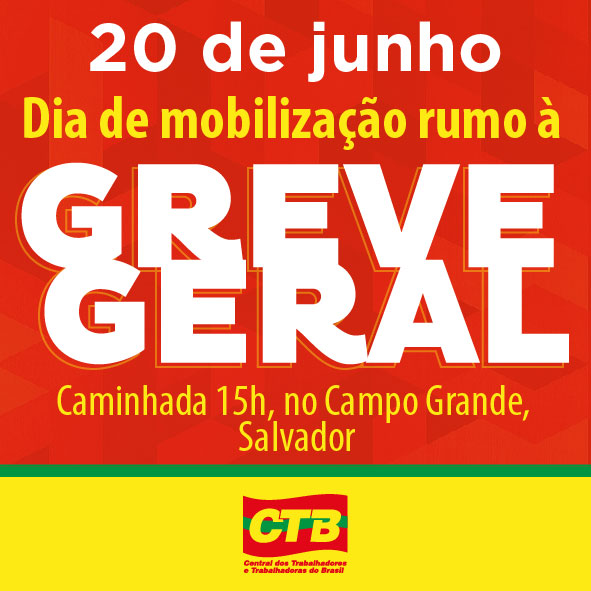 Os sindicatos devem aproveitar o Dia Nacional de mobilização, 20 de junho, para realizar assembleias, manifestações nos locais de trabalho, panfletagens e atividades de rua para convocar a população para participar da paralisação no dia 30 de junho. Em Salvador, a data será marcada por uma grande caminhada pelas ruas do Centro da cidade. A concentração será no Campo Grande, a partir das 15h.