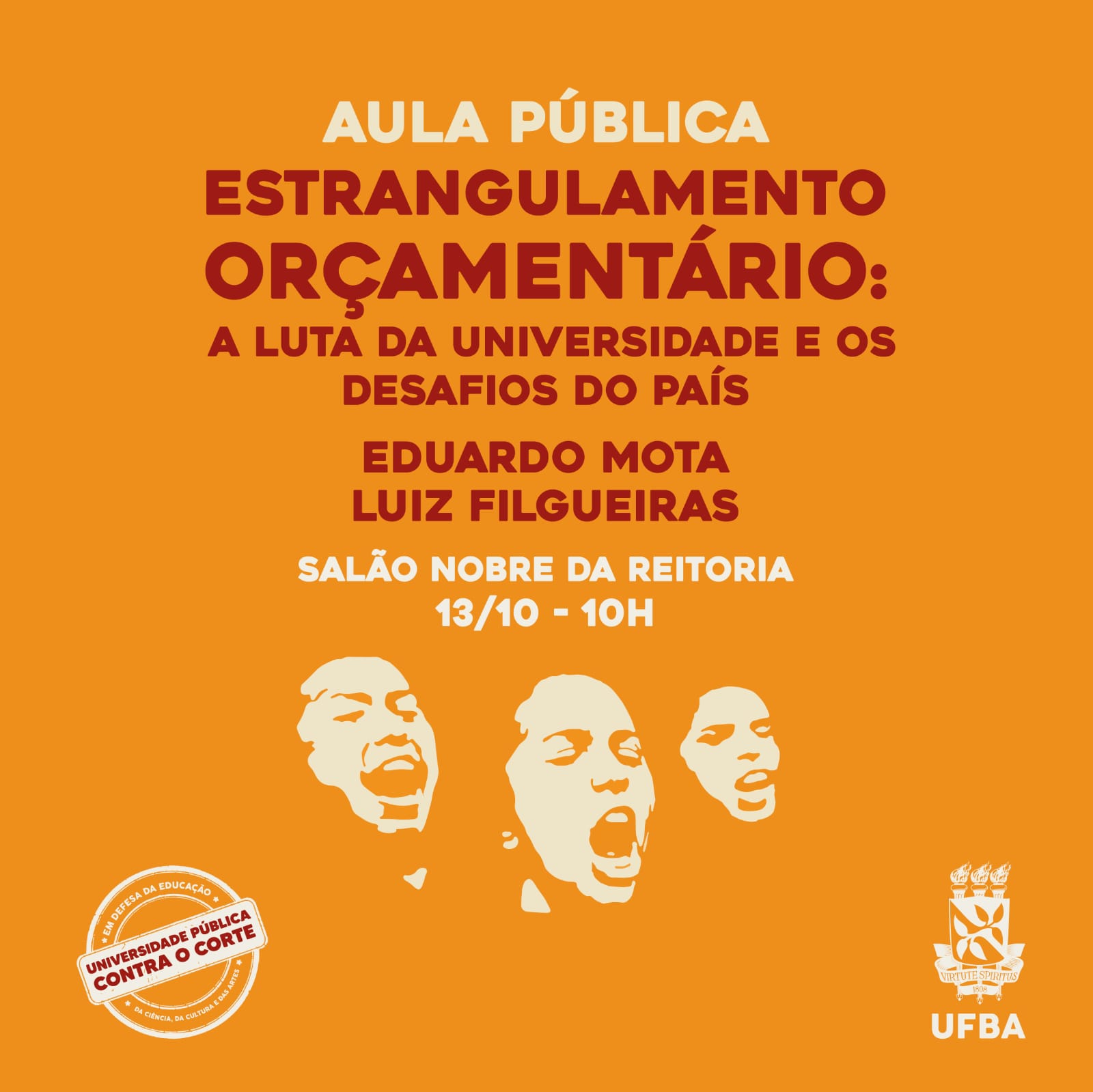 UFBA realiza a aula pública “Estrangulamento orçamentário: a luta da universidade e os desafios do país”, nesta quinta-feira (13/10)
