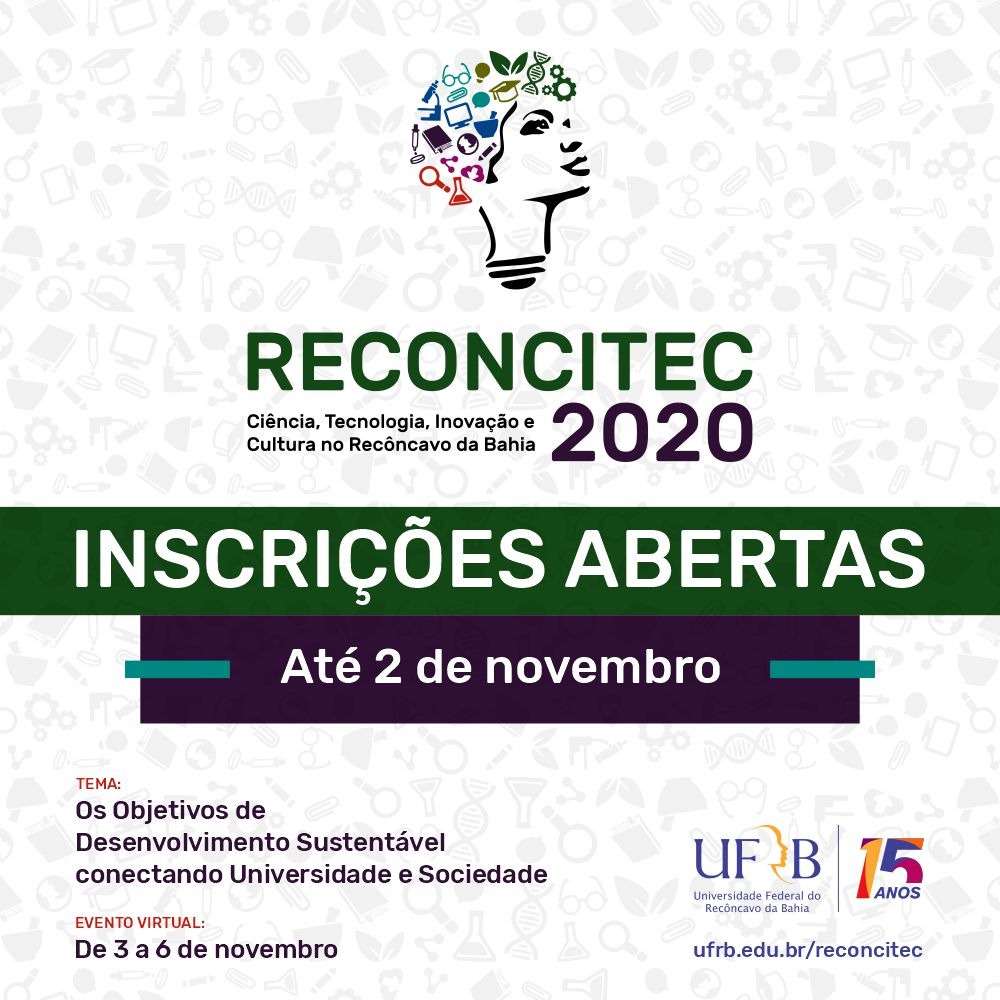 Foi dada a largada da sexta edição da Reunião Anual de Ciência, Tecnologia, Inovação e Cultura no Recôncavo da Bahia – Reconcitec 2020, o maior evento da Universidade Federal do Recôncavo da Bahia (UFRB). As inscrições começaram nesta terça-feira (06/10) e vão até o dia 2 de novembro.
