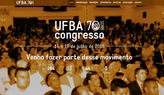 A Universidade Federal da Bahia lançou na rede web o site Congresso da UFBA (www.congresso.ufba.br), principal evento da programação comemorativa dos 70 anos da instituição. O site traz notícias, depoimentos, material de divulgação do evento e todas as facilidades para a inscrição de trabalhos. O prazo para submissão de propostas ainda não está aberto, o que ocorrerá em breve.