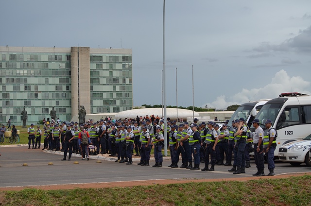 Em frente à Catedral Metropolitana, centenas de policiais de vigia, com todo aparato para reprimir os manifestantes. Nada diferente do dia 29 de novembro, em que a repressão violenta da polícia interrompeu a manifestação dos trabalhadores e estudantes no Ato Ocupa Brasília.